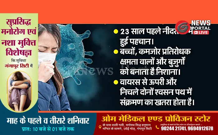 HMPV क्या है? ह्यूमन मेटान्यूमोवायरस (HMPV) एक श्वसन वायरस है जो तीव्र श्वसन संक्रमण का कारण बनता है। यह वायरस मुख्य रूप से संक्रमित व्यक्तियों के साथ निकट संपर्क के माध्यम से फैलता है। इसके लक्षणों में खांसी, बुखार, बहती नाक और गले में खराश शामिल हैं। कुछ मामलों में वायरस से दाने भी विकसित हो सकते हैं।