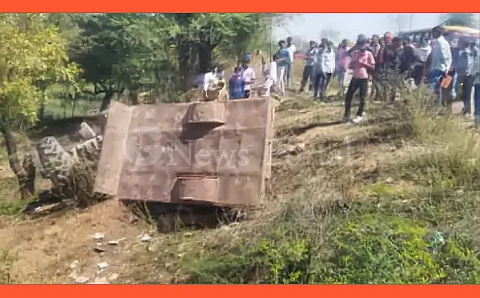 गांव सिंघाड़ा निवासी देवीसिंह जाटव (30) सड़क पार कर रहा था, तभी बयाना से रुदावल की तरफ जा रही ट्रैक्टर ट्रॉली उसे बचाने के चक्कर में अनियंत्रित हो गई। ट्रैक्टर ट्रॉली सड़क से उतरकर 20 फीट गहरे गड्ढे में पलट गई। हादसे में देवीसिंह का बायां पैर घुटने से नीचे से कट गया जबकि ट्रैक्टर चालक घनश्याम भी गंभीर रूप से घायल हो गया।