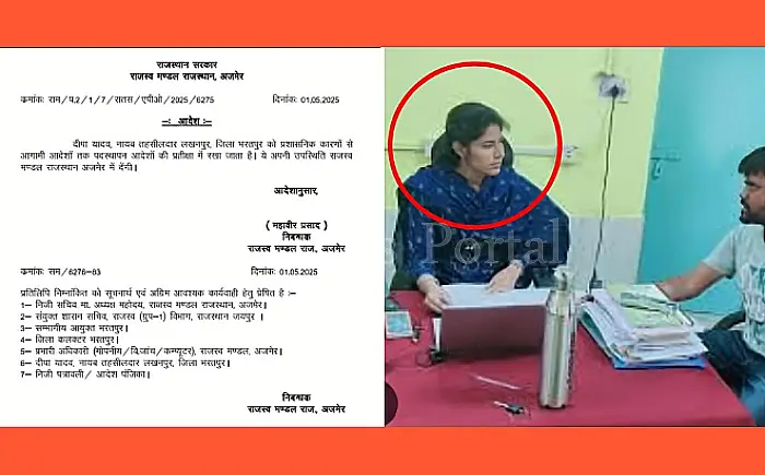 भरतपुर: भरतपुर जिले के नदबई क्षेत्र में लखनपुर तहसील की नायब तहसीलदार दीपा यादव को कथित भ्रष्टाचार के आरोपों के चलते एपीओ (पदस्थापन आदेशों की प्रतीक्षा में) किए जाने का मामला क्षेत्र में चर्चा का विषय बन गया है। प्रशासनिक कार्रवाई के तहत उन्हें आगामी आदेशों तक एपीओ करते हुए अजमेर के राजस्व मंडल में उपस्थिति देने के आदेश जारी किए गए हैं।