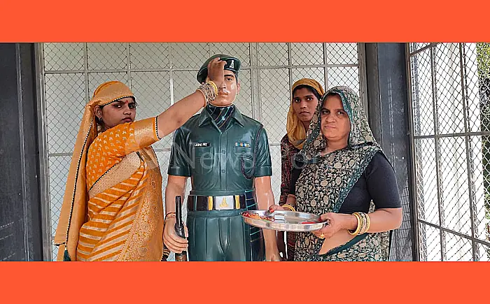 शहीद की प्रतिमा को तिलक लगाते हुए परिवार की महिलाएँ और बहनें भाव-विभोर हो गईं। यह दृश्य अत्यंत मार्मिक था, जहाँ परिवार के सदस्य आज भी शहीद को अपने बीच मानते हुए हर पर्व उनके स्मारक स्थल पर मनाते हैं।