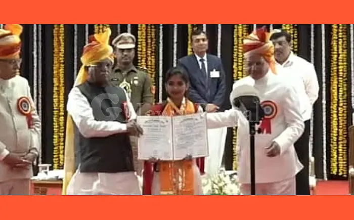 बामनवास /पिपलाई : कोटा विश्वविद्यालय द्वारा आयोजित 11वें दीक्षांत समारोह में पिपलाई निवासी चेतना पंचौली को एम.ए. संस्कृत में प्रथम आने पर गोल्ड मेडल से सम्मानित किया गया। यह सम्मान मुख्य अतिथि राज्यपाल हरिभाऊ किसनराव बागड़े, विशेष अतिथि डॉ. प्रेम चंद बैरवा उपमुख्यमंत्री और प्रो. डी.पी. सिंह कुलाधिपति, टाटा सामाजिक विज्ञान संस्थान, मुंबई एवं पूर्व अध्यक्ष, विश्वविद्यालय अनुदान आयोग, दिल्ली द्वारा प्रदान किया गया।