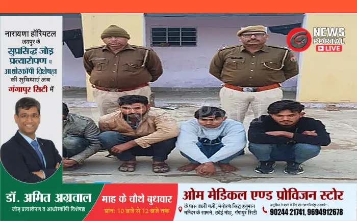 डीग: जिले की गोपालगढ़ थाना पुलिस ने एक बड़ी कार्रवाई करते हुए साइबर ठगी करने वाले गिरोह का पर्दाफाश किया है। पुलिस ने चार आरोपियों को गिरफ्तार किया है और उनके पास से कई आपराधिक साजोसामान बरामद किए हैं।