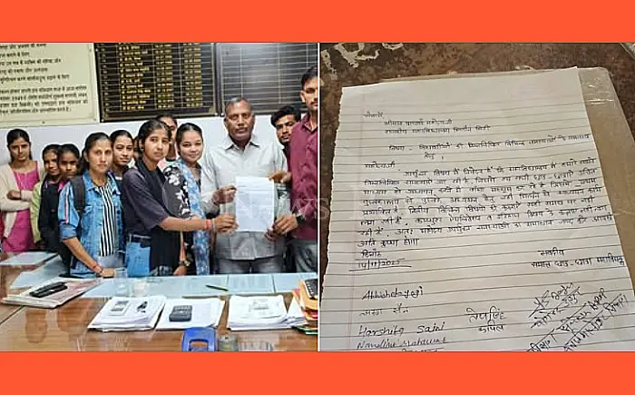 ज्ञापन सौंपने के दौरान अभिषेक, कपिल, तेजसिंह, सुलोचना, हर्षिता, दृष्टि, कशिश, दिव्या, मीरा, नंदनी, निशा, अरुण, रेणु, मधु सहित अन्य छात्र-छात्राएं शामिल रहे।