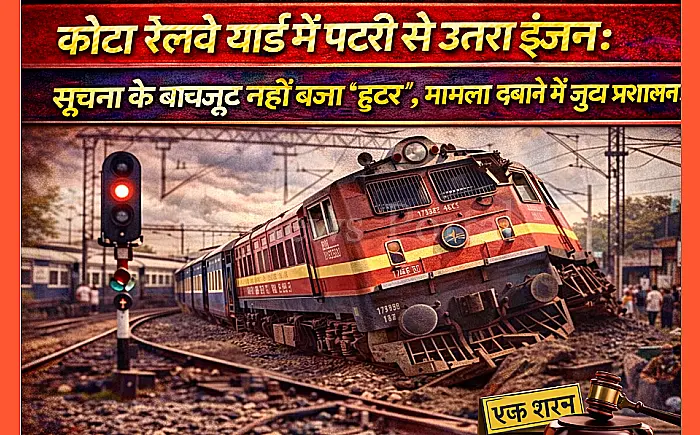 कोटा। कोटा रेलवे स्टेशन के यार्ड में शुक्रवार सुबह एक बड़ा हादसा होते-होते टल गया। शंटिंग के दौरान एक रेल इंजन पटरी से नीचे उतर गया। हालांकि, घटना यार्ड के भीतर होने के कारण मुख्य रेल मार्ग (Main Line) पर ट्रेनों का आवागमन प्रभावित नहीं हुआ, लेकिन इस पूरी घटना को गोपनीय रखने की कोशिशों ने चर्चाओं को जन्म दे दिया है।
