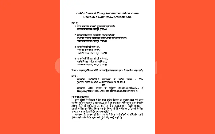 अतः आप माननीय मुख्यमंत्री महो०जी (राजस्थान सरकार), माननीय निदेशक सह विशेष सचिव महो०जी (DLB), माननीय सेक्रेटरी महो०जी (LSGD) एवं माननीय प्रिंसिपल सेक्रेटरी महो०जी (UDH) से करबद्ध विनम्र प्रार्थना है कि कृपया आप सभी अपने-अपने स्तर पर आवश्यक एवं यथोचित कार्यवाही कर यह सुनिश्चित करने/करवाने की कृपा करें कि —