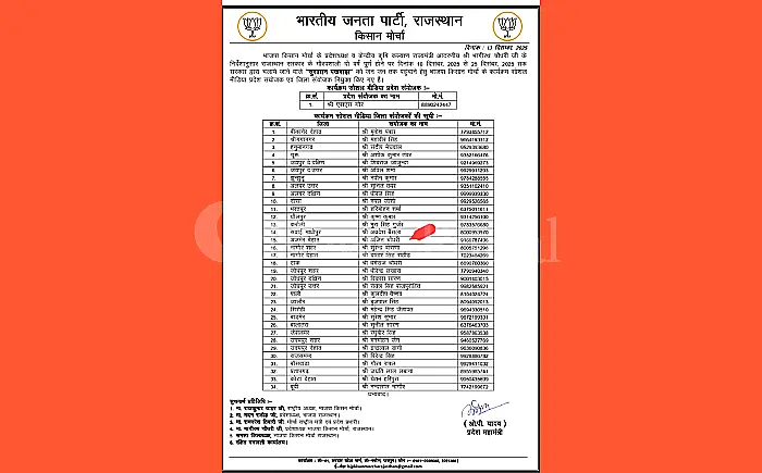 करौली। भारतीय जनता पार्टी (भाजपा) किसान मोर्चा के प्रदेशाध्यक्ष और केंद्रीय कृषि एवं किसान कल्याण राज्यमंत्री भागीरथ चौधरी के निर्देशानुसार संगठन में एक महत्वपूर्ण नियुक्ति की गई है।