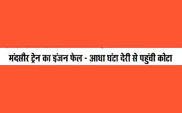 इंजन में खराबी के चलते मंदसौर-कोटा ट्रेन कोटा स्टेशन पर लगभग आधा घंटा देरी से पहुंची। दोपहर के समय ट्रेन के बीच रास्ते में खड़ी रहने के कारण यात्रियों, खासकर गर्मी में परेशान होते रहे।