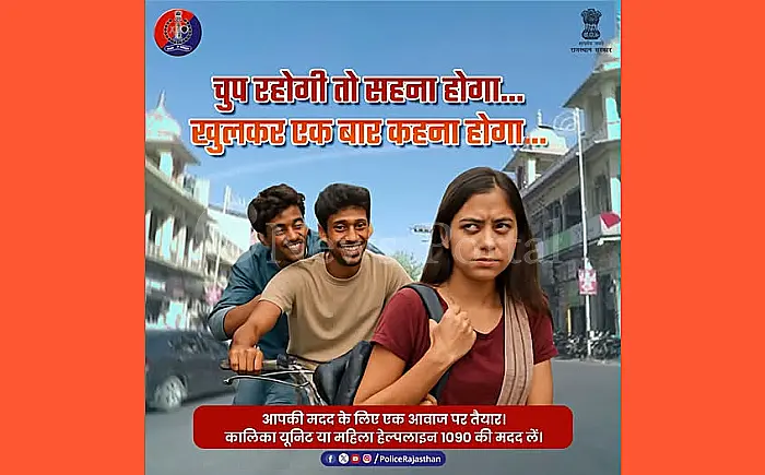 चुप्पी नहीं, खुलकर अपनी परेशानी बताएं। छेड़छाड़ सहे नहीं, विरोध करें। आपकी चुप्पी उनकी ताकत बनती है। राजस्थान पुलिस सदैव आपकी सुरक्षा के लिए तत्पर है। किसी मुसीबत में हो तो महिलाएं विशेष सुरक्षा हेल्पलाइन 1090 पर संपर्क करें।