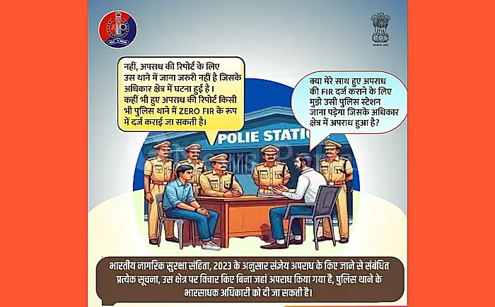 राजस्थान - सवाई माधोपुर पुलिस ने एक महत्वपूर्ण जानकारी साझा की है, जिसमें बताया गया है कि किसी भी अपराध की रिपोर्ट दर्ज कराने के लिए उस थाने में जाना जरूरी नहीं है जिसके अधिकार क्षेत्र में घटना हुई है। नागरिक सुरक्षा संहिता, 2023 के अनुसार, अपराध कहीं भी हुआ हो, उसकी 'ज़ीरो एफआईआर' किसी भी पुलिस थाने में दर्ज कराई जा सकती है।