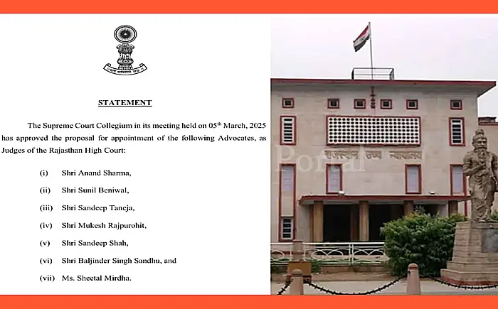 हैशटैग: #राजस्थानहाईकोर्ट #सुप्रीमकोर्टकॉलेजियम #न्यायाधीश #नियुक्ति #जयपुर #राजस्थान #समाचार #कानून #अदालत