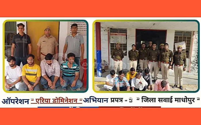 सवाई माधोपुर:भरतपुर रेंज के श्रीमान महानिरीक्षक पुलिस के निर्देशानुसार, सवाई माधोपुर जिले में 16 मार्च से 17 मार्च 2025 तक "ऑपरेशन प्रहार डोमिनेशन" के तहत सख्त अभियान चलाया गया। पुलिस अधीक्षक ममता गुप्ता के नेतृत्व में इस दो दिवसीय अभियान में वांछित अपराधियों, असामाजिक तत्वों और अवैध गतिविधियों पर नकेल कसने के लिए विशेष कार्रवाई की गई।