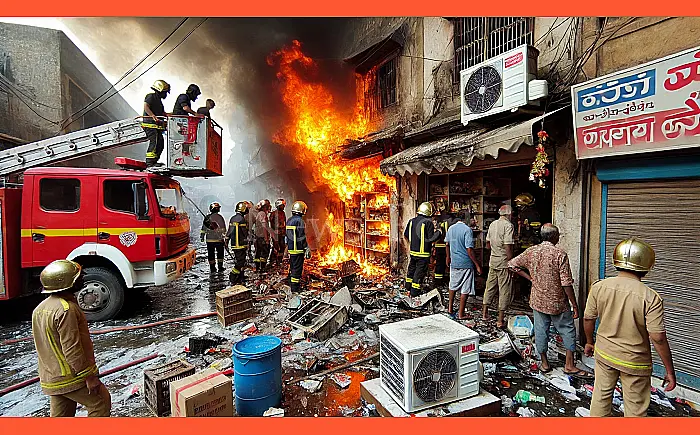 सवाई माधोपुर, राजस्थान - सवाई माधोपुर के बजरिया स्थित चौथ बरवाड़ा बस स्टैंड पर एक दुकान में एसी में शॉर्ट सर्किट होने से आग लग गई। इस घटना में दुकान में रखे दस्तावेज, एसी, पंखे और अन्य सामान जलकर राख हो गए।