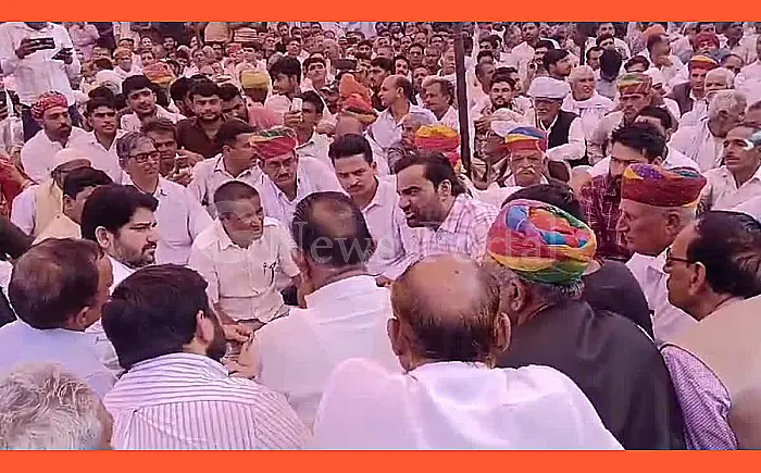 नागौर: लाडनूं क्षेत्र के गेनाणा निवासी भागीरथ जाट की संदिग्ध मौत के मामले में पिछले 9 दिनों से निंबी जोधा थाने के बाहर ग्रामीणों का जारी धरना शुक्रवार को समाप्त हो गया। नागौर सांसद हनुमान बेनीवाल और लाडनूं विधायक मुकेश भाकर की मौजूदगी में विभिन्न मांगों पर सहमति बन गई है।