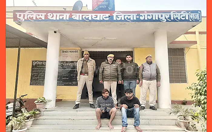 गंगापुर सिटी: श्रीमती ममता गुप्ता, आईपीएस, पुलिस अधीक्षक, जिला गंगापुर सिटी के निर्देशानुसार चलाए जा रहे अभियानों को सफल बनाते हुये श्री राकेश राजौरा, आरपीएस, अतिरिक्त पुलिस अधीक्षक गंगापुरसिटी, श्री मुरारीलाल मीना, आरपीएस, वृत्ताधिकारी वृत्त टोडाभीम के निकटतम सुपरविजन में श्री संतोष कुमार उ0नि0, थानाधिकारी बालघाट के नेतृत्व मे मय टीम द्वारा दिनांक 26.12.2024 अवैध हथियार रखने वालो के विरूद्ध त्वरित व प्रभावी कार्यवाही करते हुये आर्म्स एक्ट में अवैध हथियार दो बन्दूक 12 बोर व एक जिन्दा कारतूस 12 बोर के साथ दो अभियुक्तो को गिरफ्तार किया गया।